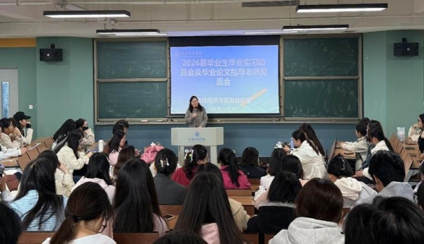 为全面落实毕业生毕业论文、实习及就业工作,2025年10月30日中午12点,经济学院国际经济与贸易教研室在立业楼S202教室召开2026届毕业论文工作暨实习就业动员大会,国际经济与贸易教研室全体教师、毕业论文相关指导老师、2026届国际经济与贸易、国际商务专业全体学生参加会议。